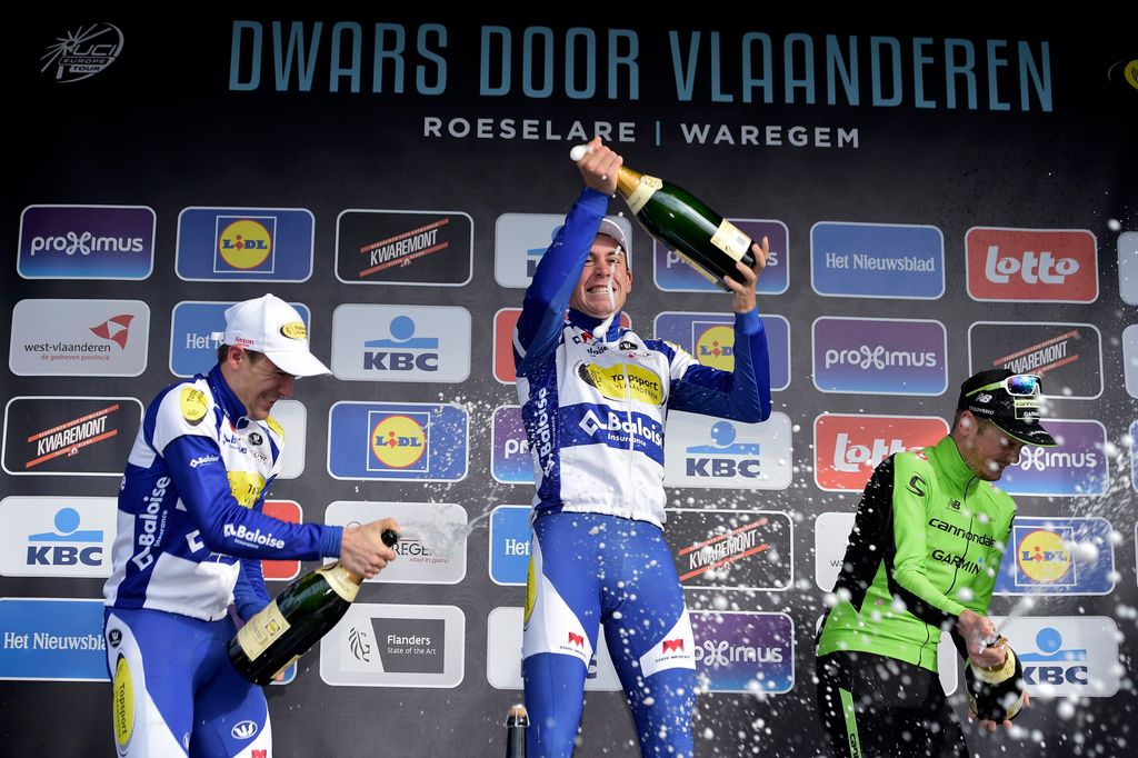 Voor de voorlopig laatste winnaar op een Eddy Merckx fiets, keren we terug naar 2015. Exact tien jaar na hun eerste triomf in Dwars Door Vlaanderen, was Topsport Vlaanderen - Baloise opnieuw aan het feest.