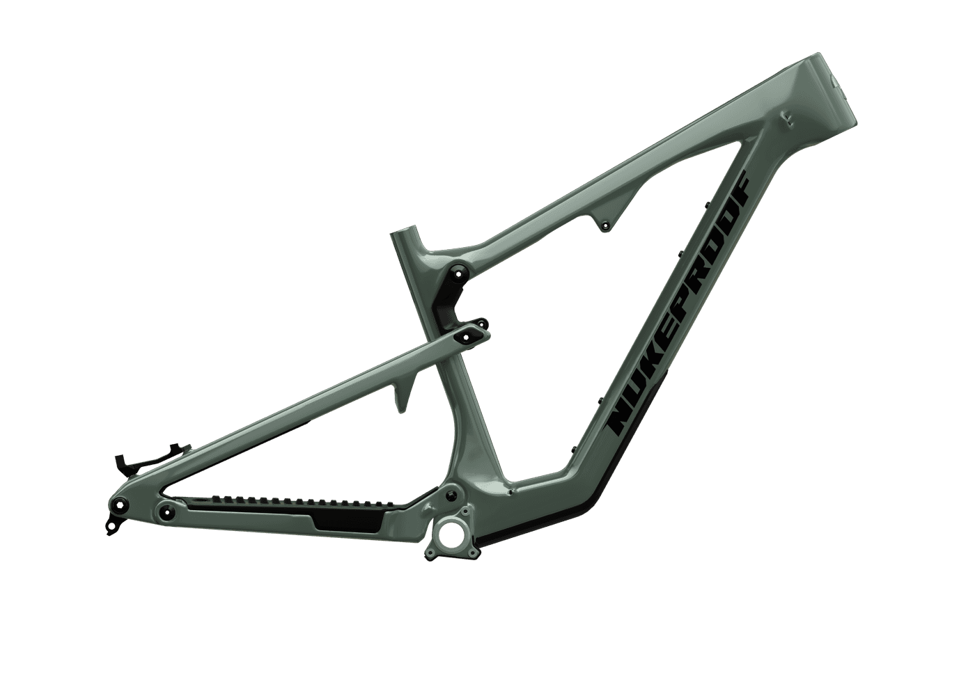 Every detail of the Nukeproof Reactor is engineered to make life on and off the trail seamless. With rider focused practicality at its core, it combines performance with easy maintenance. The front triangle accepts a full size 750 ml water bottle and an accessory mount beneath the top tube carries tools or spares, ideal for long self supported rides. Generous mud clearance for tyres up to 2.6 inches ensures reliability in harsh conditions, while MAX bearings throughout the frame provide lasting smoothness and durability. Servicing is straightforward thanks to accessible hardware, sensible Allen key sizes and laser etched torque markings, complemented by tube in tube internal cable routing for a clean and rattle free setup. To finish, 3D contoured rubber frame guards protect key areas from impacts and chain noise. Thoughtfully engineered and trail proven, the Reactor is built to perform ride after ride.
