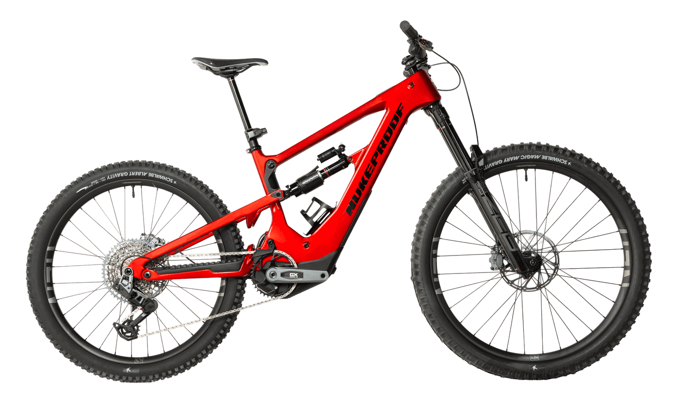 Developed over two years in collaboration with SRAM and the Eagle Powertrain, the Megawatt Carbon integrates SRAM’s Eagle AXS Transmission with a revolutionary new drive system. The result? A perfectly tuned e-bike that utilises SRAM's AXS ecosystem providing complete integration and offering our trademark Nukeproof ride experience — fast, fun, and built to send.