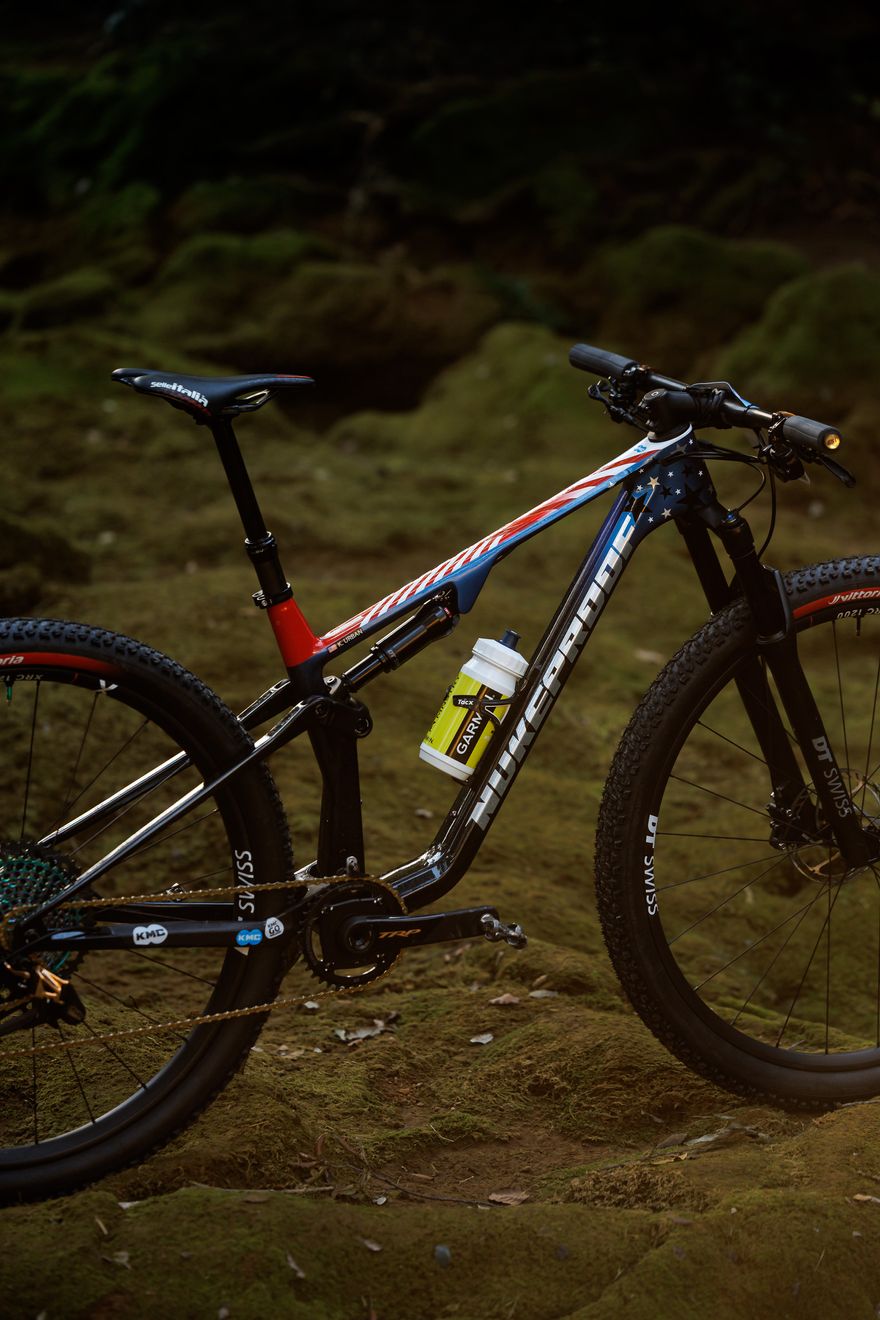 A special design was developed for her Hyperfly, subtly incorporating the Stars and Stripes of the American flag. The bike combines modern cross-country geometry with a single-pivot rear suspension and is fully tailored to the preferences of the American champion. The Hyperfly is not yet commercially available, but that will change in the future.